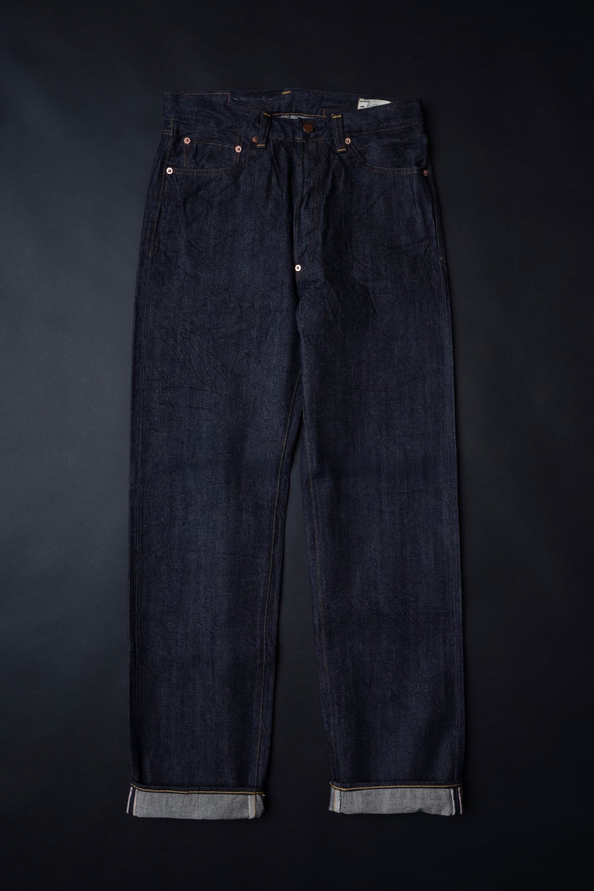 BUCKAROO 是一款現代休閒直筒款,充分利用了當時的複古細節。使用未經任何加工的編織布邊牛仔布。