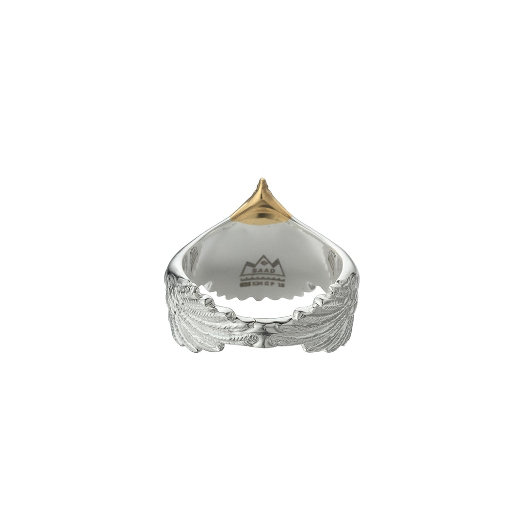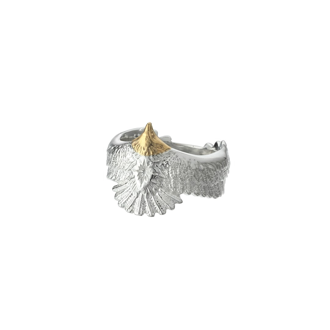 The entire ring is rhodium-plated, and the eagle's head is gold-plated, creating a luxurious two-tone finish.