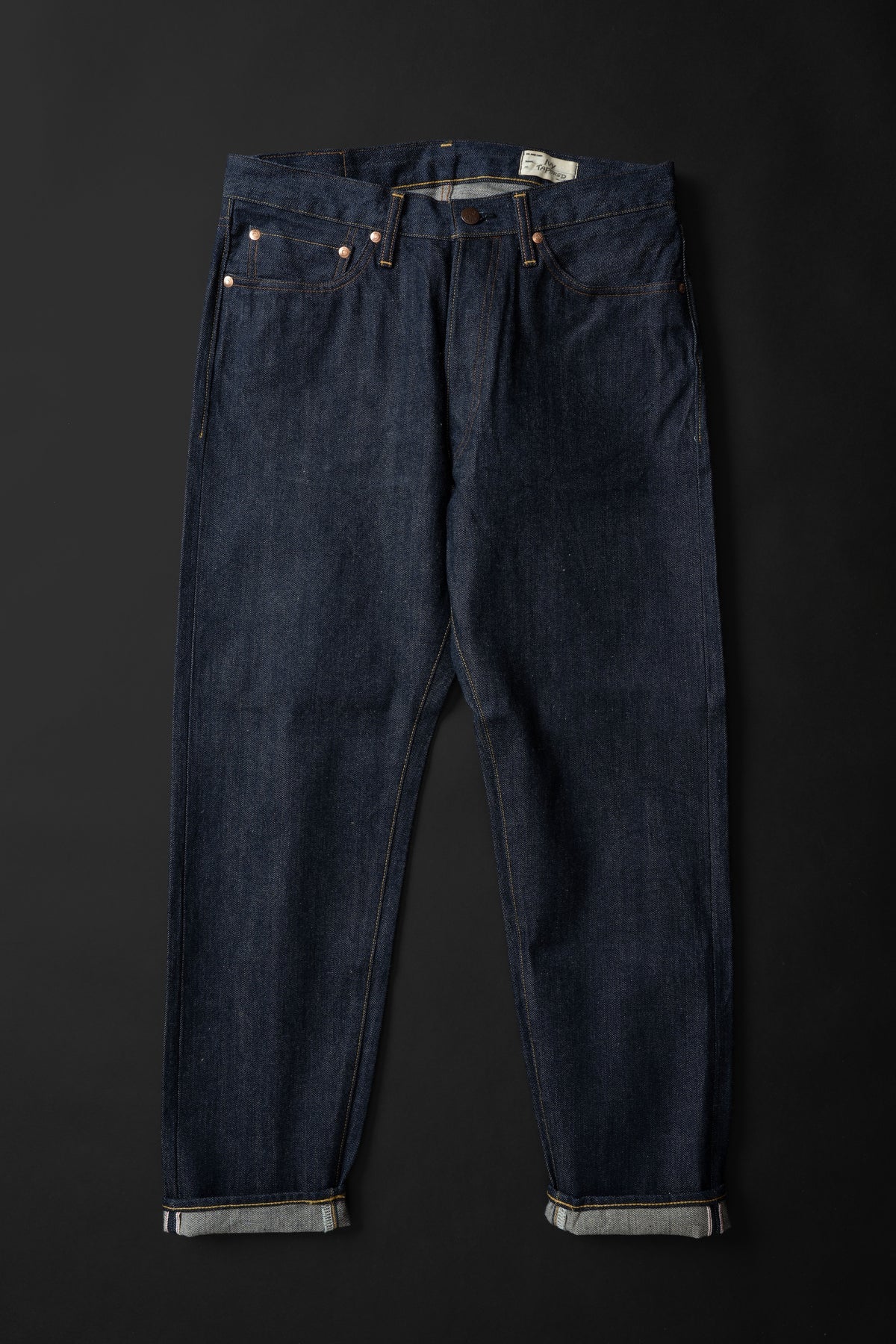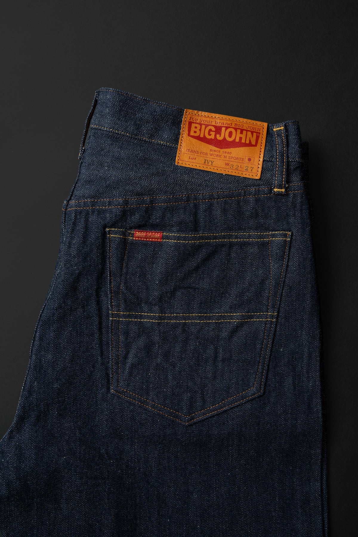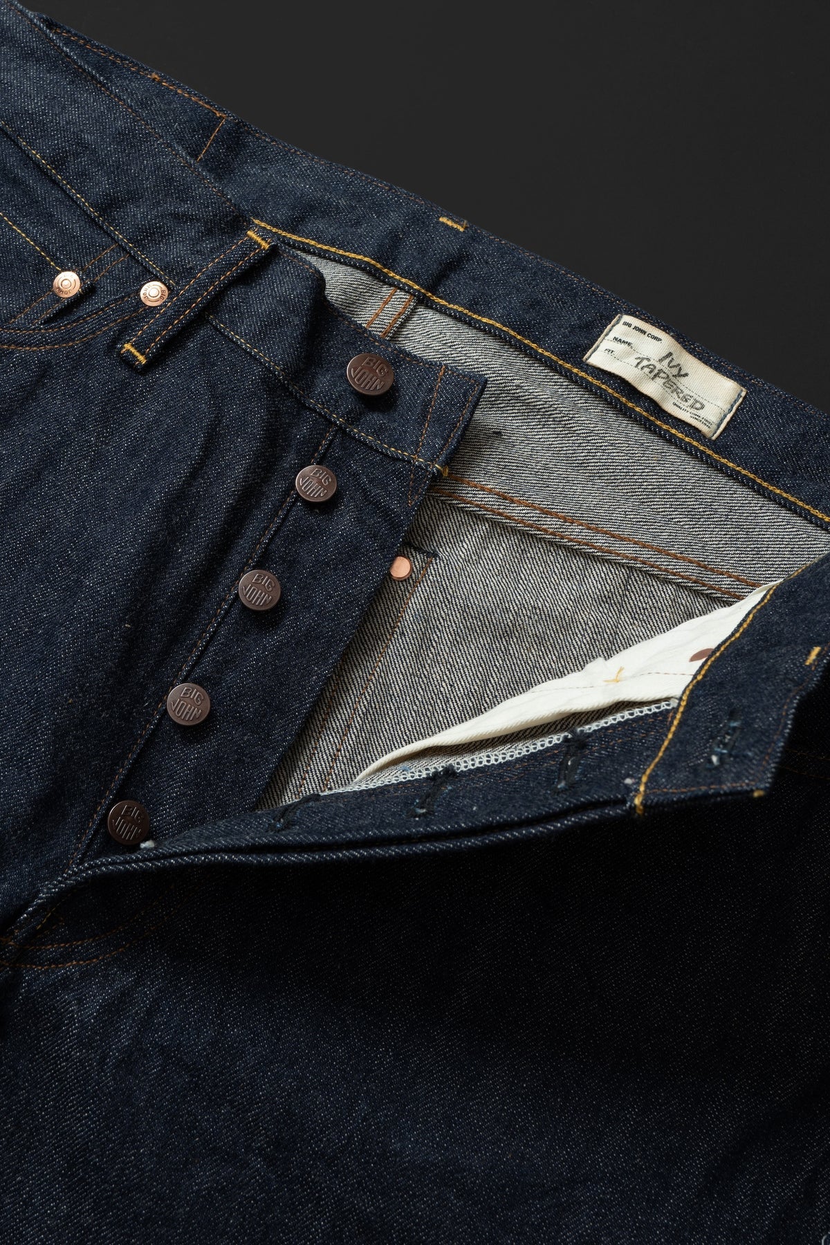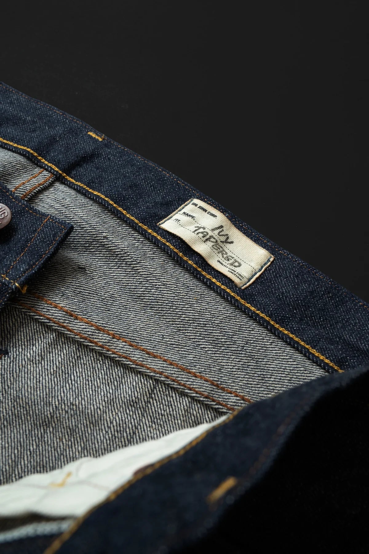 IVY 是一款現代休閒款。使用未經任何加工的編織布邊牛仔布。錐形剪裁,褲腳位修腳。