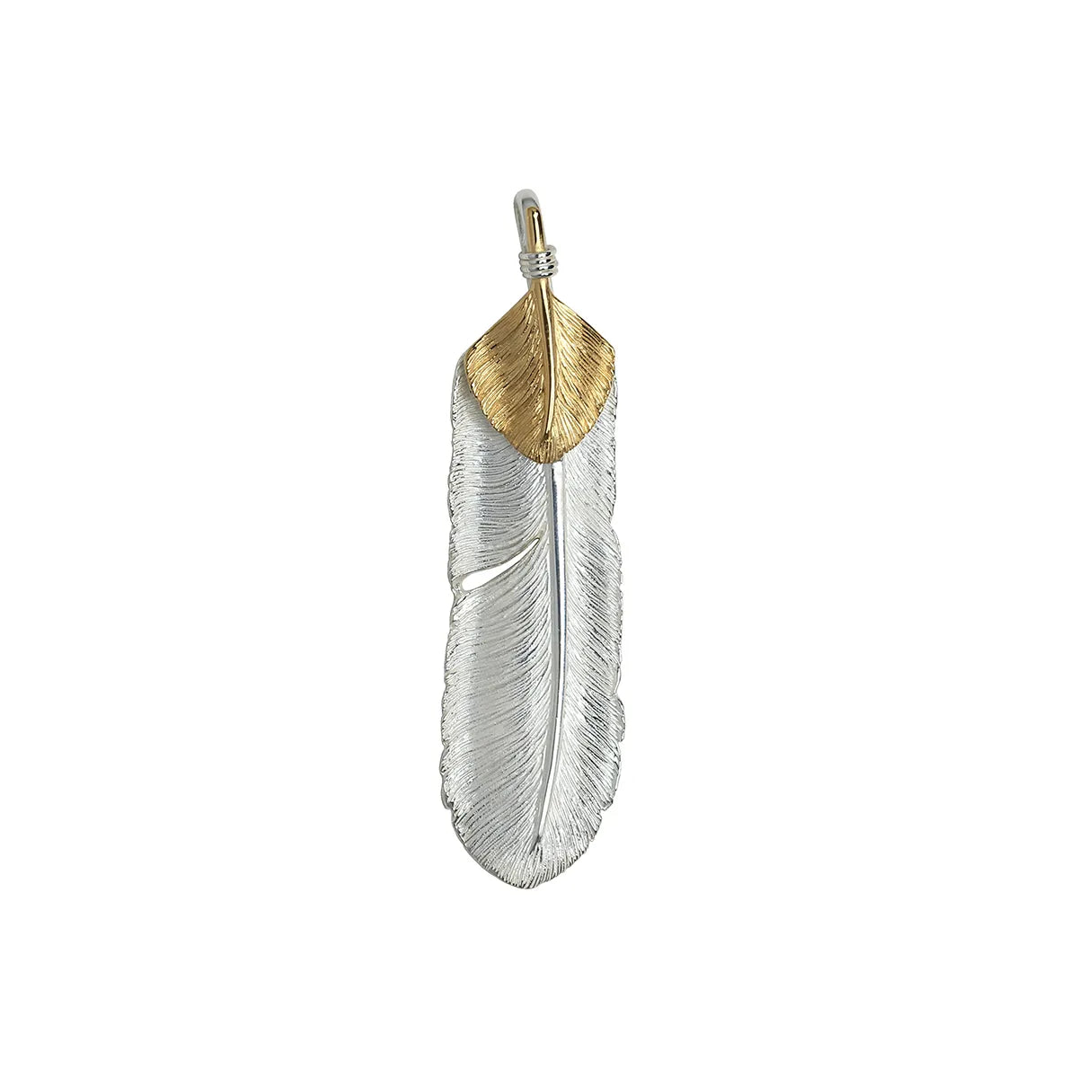 The delicate feather texture is finely expressed, while the combination of silver and gold plating creates a striking two-tone contrast.