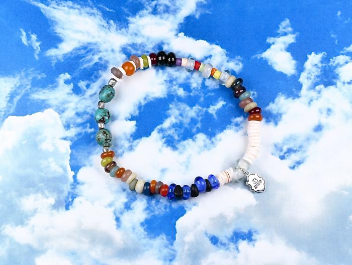 BEADS : BLACK OBSIDIAN, GRASS, SHELL, TURQUOISE MAGNESITE